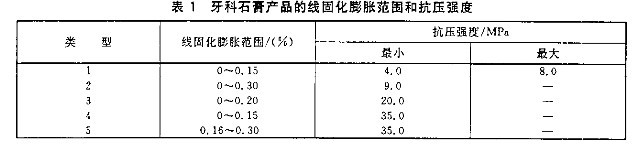 牙科石膏產(chǎn)品的抗壓強(qiáng)度應(yīng)該符合下表要求: